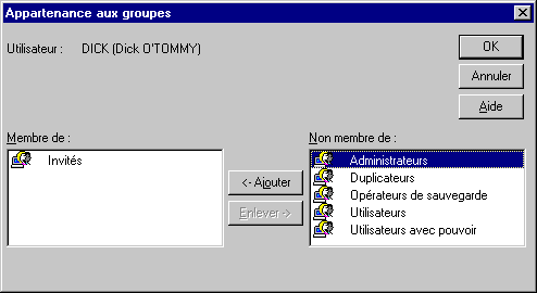 Par ailleurs, on a créé un compte dans le groupe "invités" (aucun